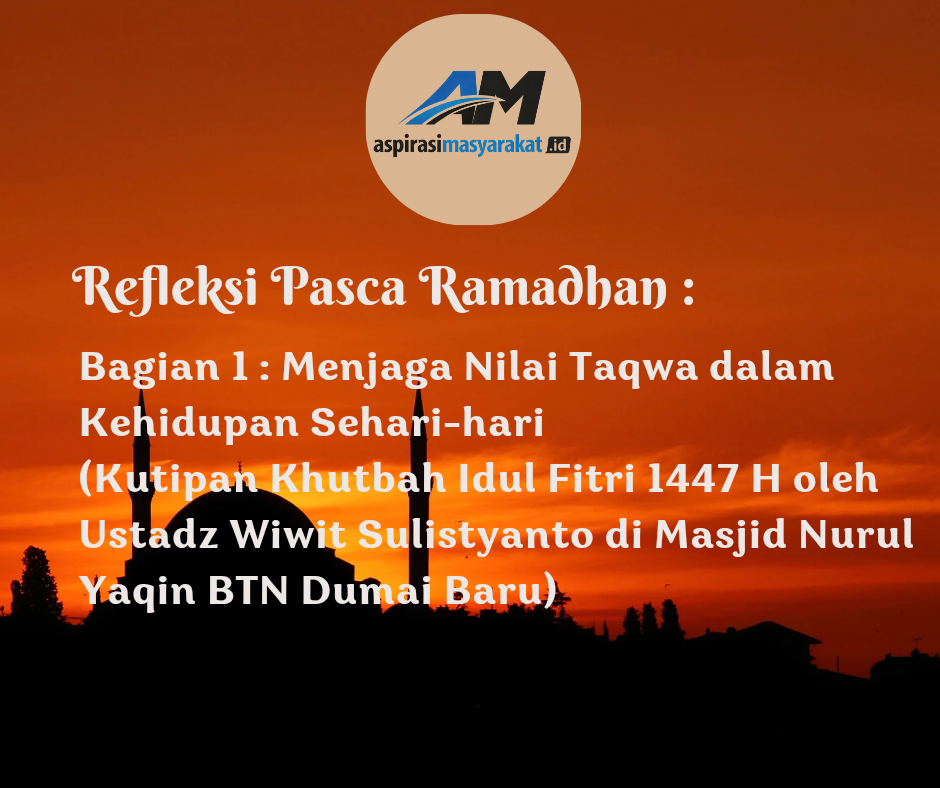 (Kutipan Khutbah Idul Fitri 1447 H oleh Ustadz Wiwit Sulistyanto (Kepala SMAS Budi Dharma) di Masjid Nurul Yaqin BTN Dumai Baru)